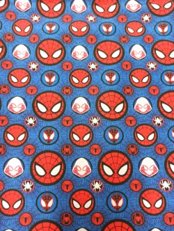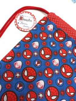 Divertida mochila infantil con tela de Spiderman en algodón 100% y combinada con topo rojo. Medidas 25x30cm. Ideal como bolsa de almuerzo.
